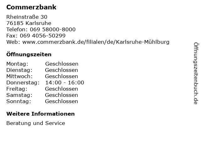 Commerzbank In Karlsruhe Muhlburg Rheinstr 30 Offnungszeiten