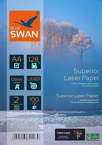 Blue Swan 0 Blatt Superior Colour Laser Fotopapier Flyer Papier 128g Qm Glossy Glaenzend Beidseitig Bedruckbar Fuer Allen Normalen Farblaserdruckern Kopierern 128g Amazon De Burobedarf Schreibwaren