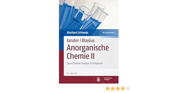 Jander Blasius Anorganische Chemie Ii Quantitative Analyse Und Pra Parate Chemie Ii Anorganische Jander Anorganische Chemie Chemie Anorganisch