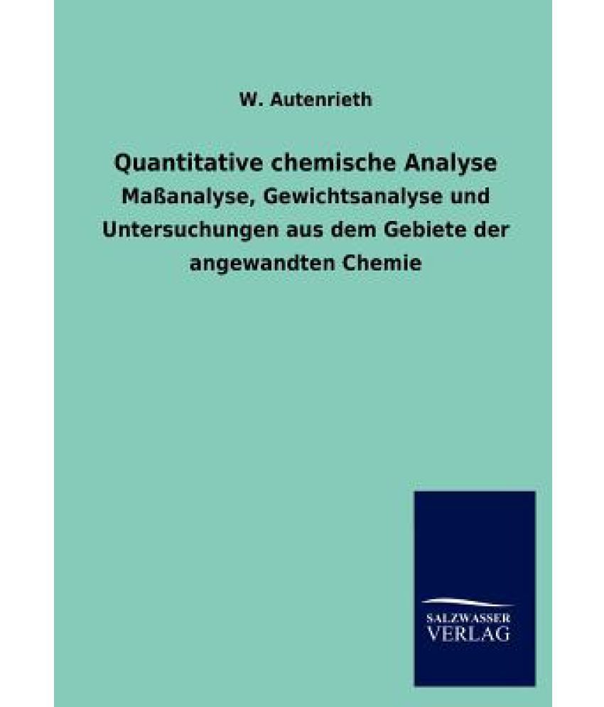 Eine quantitative Analyse ist ein chemisches und/oder physikalisches Verfahren, bei der es um die Beantwortung der Frage geht, wie viel von einem Stoff in einer gegebenen Probe vorhanden ist Alle Methoden lassen sich einteilen in die "klassischen" und die physikalischen Analysemethoden Klassische Methoden Bei den klassischen Methoden geht es um chemische Umsetzungen, nach denen eine. Quantitative analysis is used to determine the percentage of a particular element or ion in a sample In a typical gravimetric analysis the percentage of an ion of interest in a solid compound is determined This procedure involves dissolving a substance of unknown composition in water and allowing the ion of interest to react with a counter ion to form a precipitate. Altklausuren zum Fach Quantitative Analyse für Chemiker und Chemikerinnen an der Universität Leipzig.