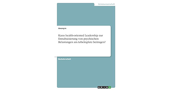 Kann Health Oriented Leadership Zur Enttabuisierung Von Psychischen Belastungen Am Arbeitsplatz Beitragen Amazon De Anonym Bucher