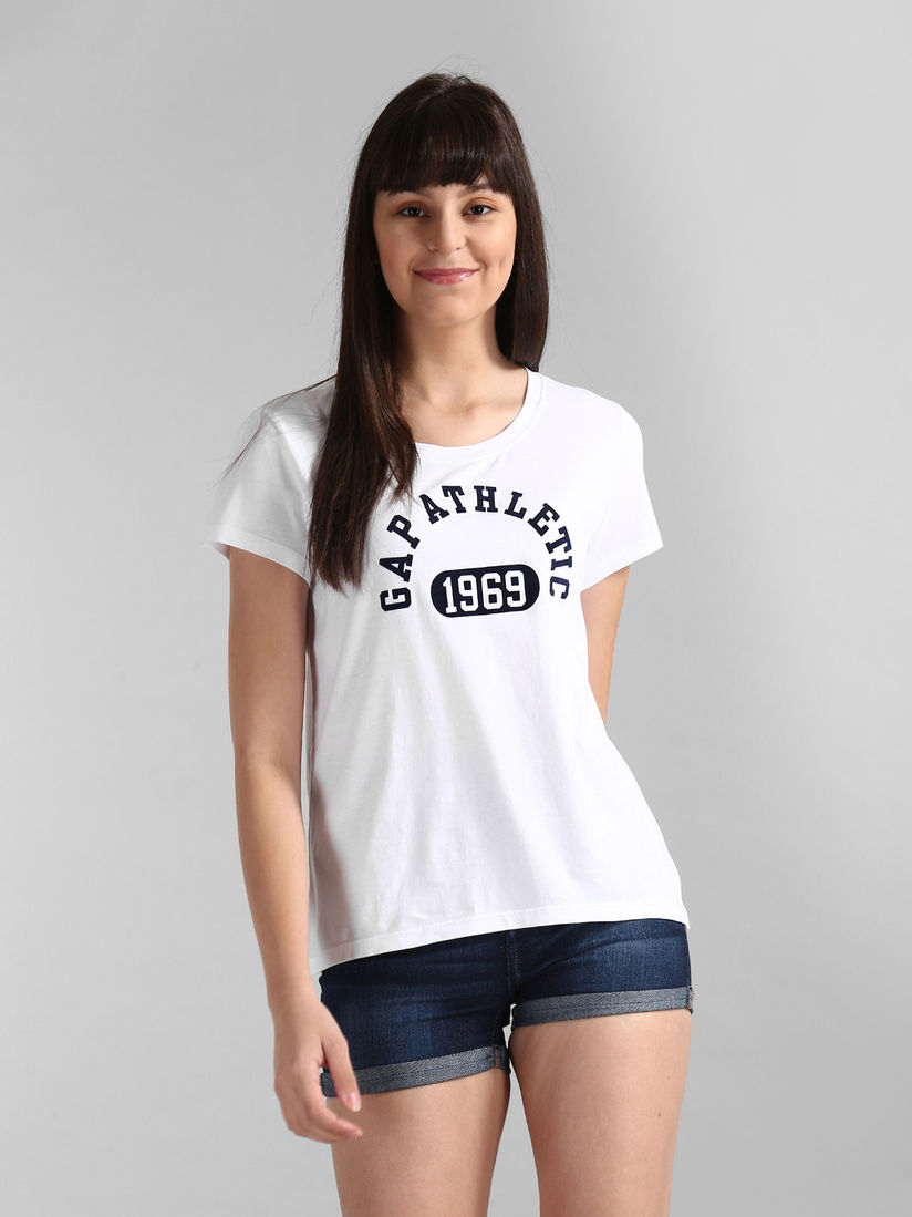 Gap Tops Buy Gap White Crewneck Flock T Shirt Online Nykaa Fashion