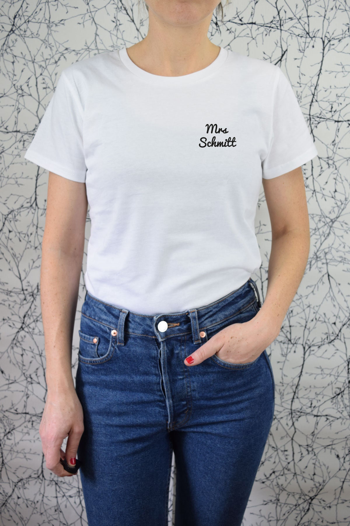 Women S T Shirt With Custom Name Print Mrs White T Shirt Flock Print