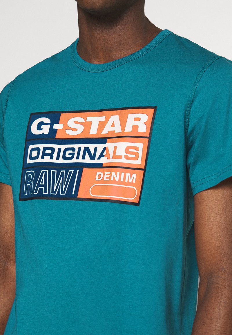 G Star Originals Flock Logo T Shirt Print Cricket Blue Petrol Zalando De