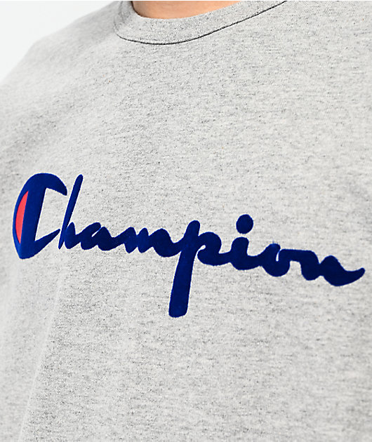 Champion Flock Script Grey Blue T Shirt Zumiez