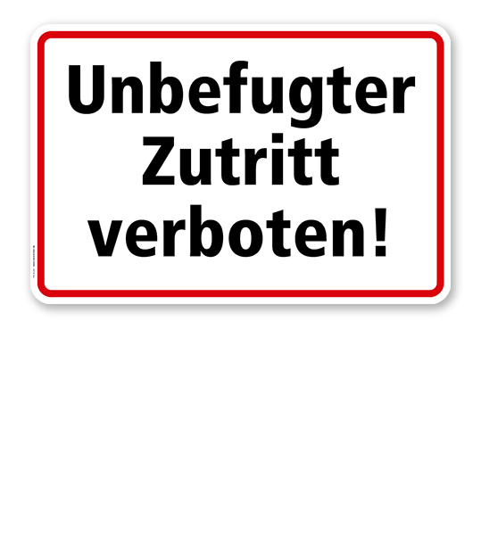 Aber "Unbefugten" ist der Zutritt ja sowieso schon per definitionem verboten, denn sie sind ja unbefugt zuzutreten – Christian Geiselmann Sep 22 '17 at 1016 @ChristianGeiselmann Das stimmt so nicht ganz Man kann auch den Zutritt für Befugte (zumindestens temporär) verbieten (siehe Antwort). Verbotsschild Zutritt für Unbefugte verboten, KRO, gemäß KennV, für den Innen und begrenzten Außeneinsatz, Material selbstklebende Folie, temperaturbeständig von 40 bis 80°C, resistent gegen viele Chemikalien, Durchmesser 0 mm. Für die Außenmontage geeignet, da witterungs und UVbeständig!.