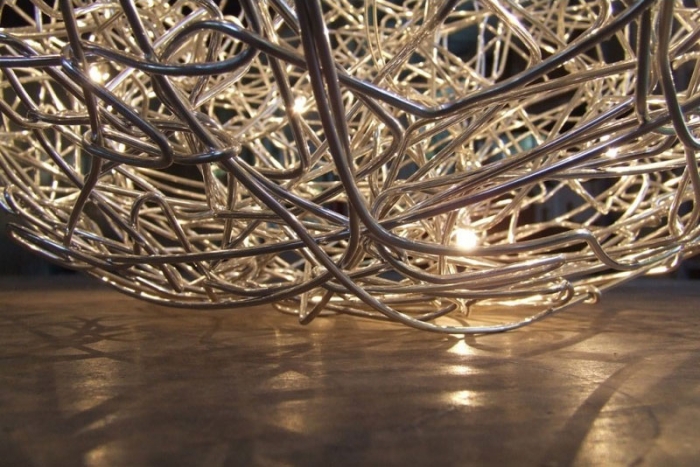 Fil de Fer Discover the collection StchuMoon Discover the collection Macchina della Luce Discover the collection Luci d’Oro Discover the collection PostKrisi Discover the collection Lucenera Discover the collection. Sculptures en fil de fer inspirées du monde animal et végétal Créations faites main en France Pièces uniques signées Emilie Bredel. The Catellani & Smith Fil de Fer F 70 is an LED Floor Lamp It is anodized in goldplated or made of natural aluminum wire and has a spherical shape The dimmer is integrated on the cord The diameter of this lamp is 70 cm The two surfaces aluminum natural and gold are on offer.