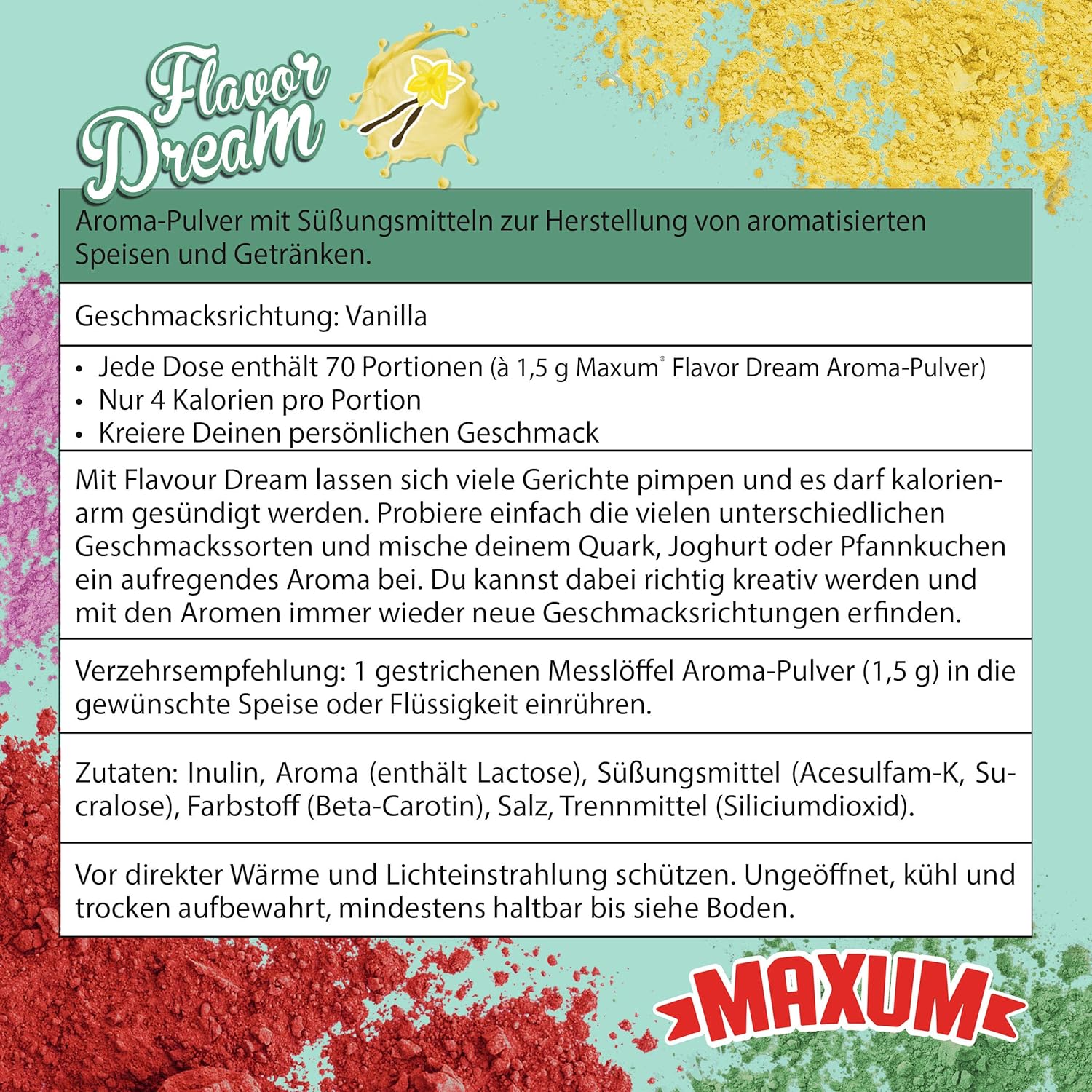 Maxum Flavor Dream Vanilla Aroma Pulver 105g Dose Kalorienarm Ideal Als Lebensmittel Back Aroma Bei Low Carb Diat Geschmack Vanille Amazon De Drogerie Korperpflege
