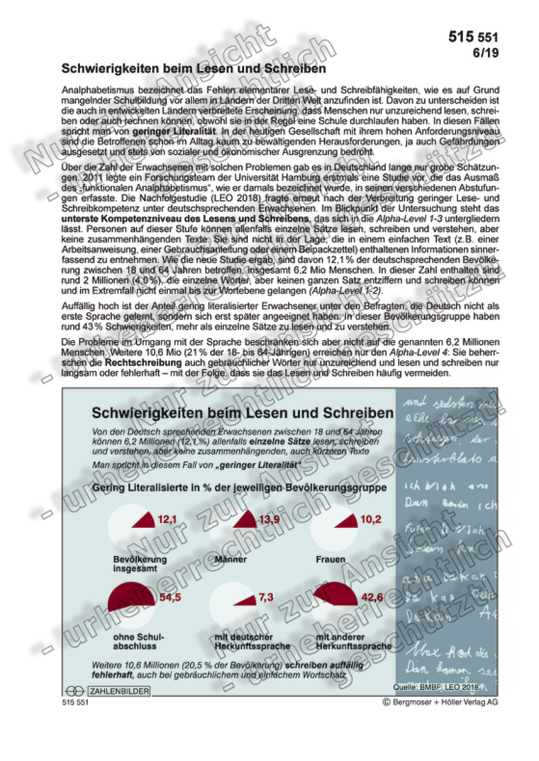 Schwierigkeiten Beim Lesen Und Schreiben Erziehung Und Unterricht Kultur Deutschland Zahlenbilder
