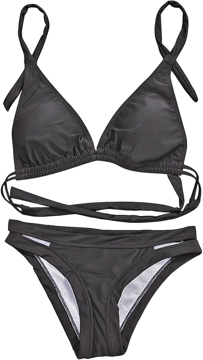 Laemilia Damen Neckholder Bikinis Triangel Tie Badeanzug Badekleidung Cross Over Verband Swimsuit Schwarz Amazon De Bekleidung
