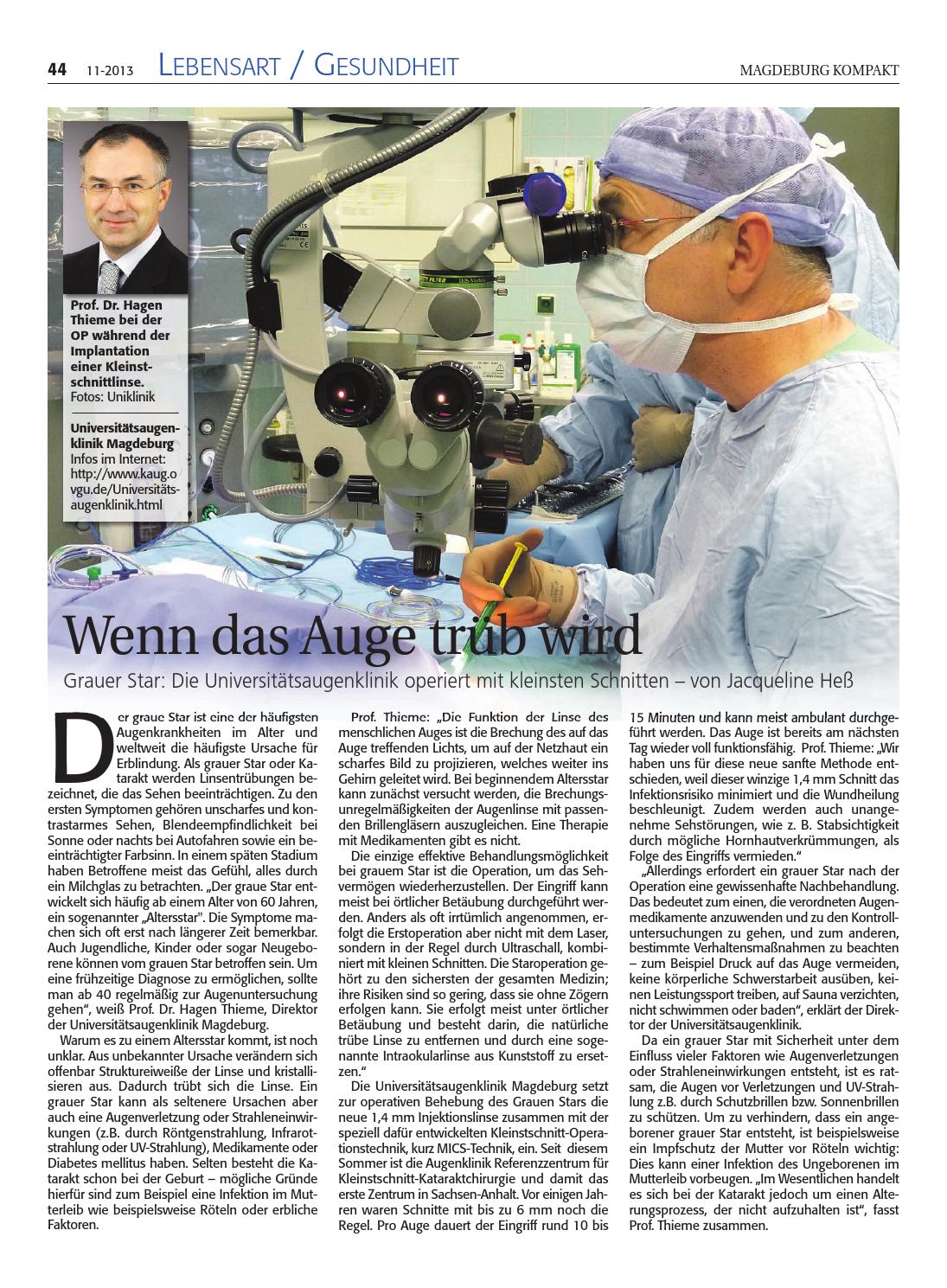 Universitätsmedizin Greifswald Körperschaft des öffentlichen Rechts Klinik und Poliklinik für Augenheilkunde FerdinandSauerbruchStraße. Magdeburg l Das nun bekannt gewordene Gutachten von Ernst & Young vom 6 Mai kommt zum Urteil, dass in etlichen Bereichen der Uniklinik durch „unzureichende Hygienestandards und grobe bauliche Mängel“ eine „akute Patientengefährdung und Gefährdung der Mitarbeiter“ gegeben seien. 1224 WunschlinsenZentrum der UniAugenklinik Magdeburg eröffnet Kornelia Suske Pressestelle Universitätsklinikum Magdeburg Neue OPTechnik ermöglicht Einsatz individueller.