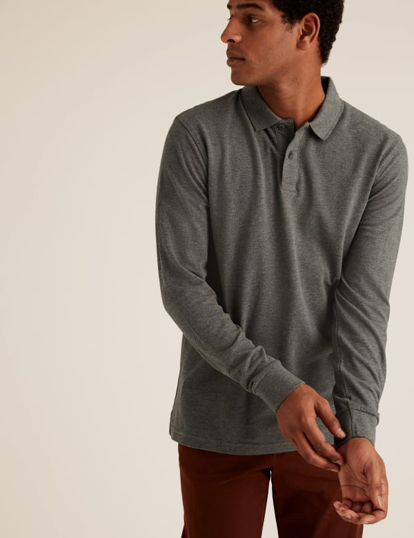 Pure Cotton Long Sleeve Polo Shirt M S Collection M S