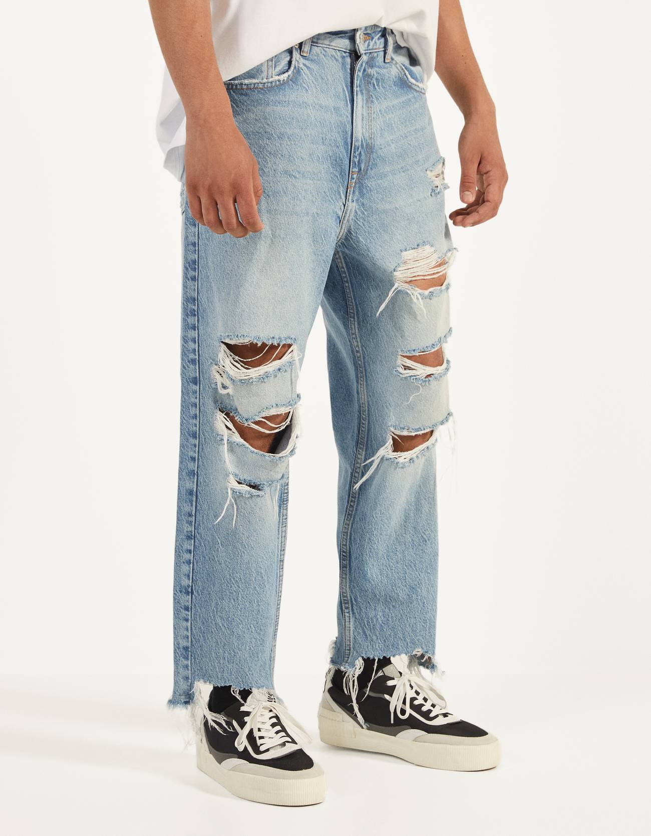 Loose Fit Jeans With Rips Tailoring Bershka Germany
