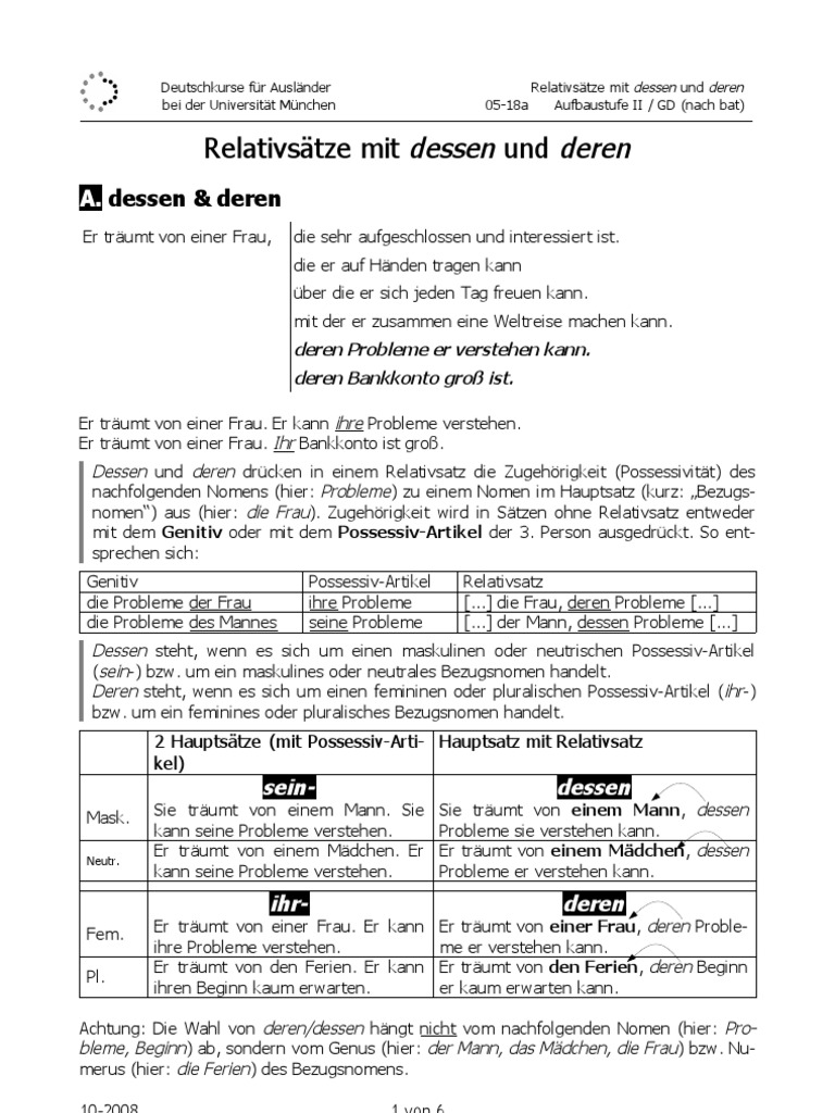 Relativsatze Mit Dessen Und Deren Pdf Dietz Daf Relativsatze Mit Dessen Und Deren Pdf Dietz Deutsch Lernen Deutschkurs Lernen