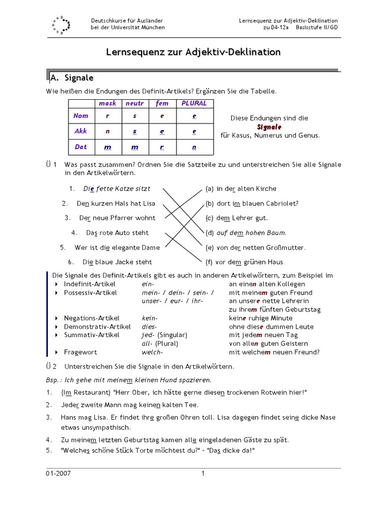 Die Adjektiv Deklination Pdf Dietz Und Daf De Qs1 Info Deutschkurse Fur Auslander Bei Der Universitat Munchen Die Adjektiv Deklination 07 10b Qualifizierungsstufe I Gd Die