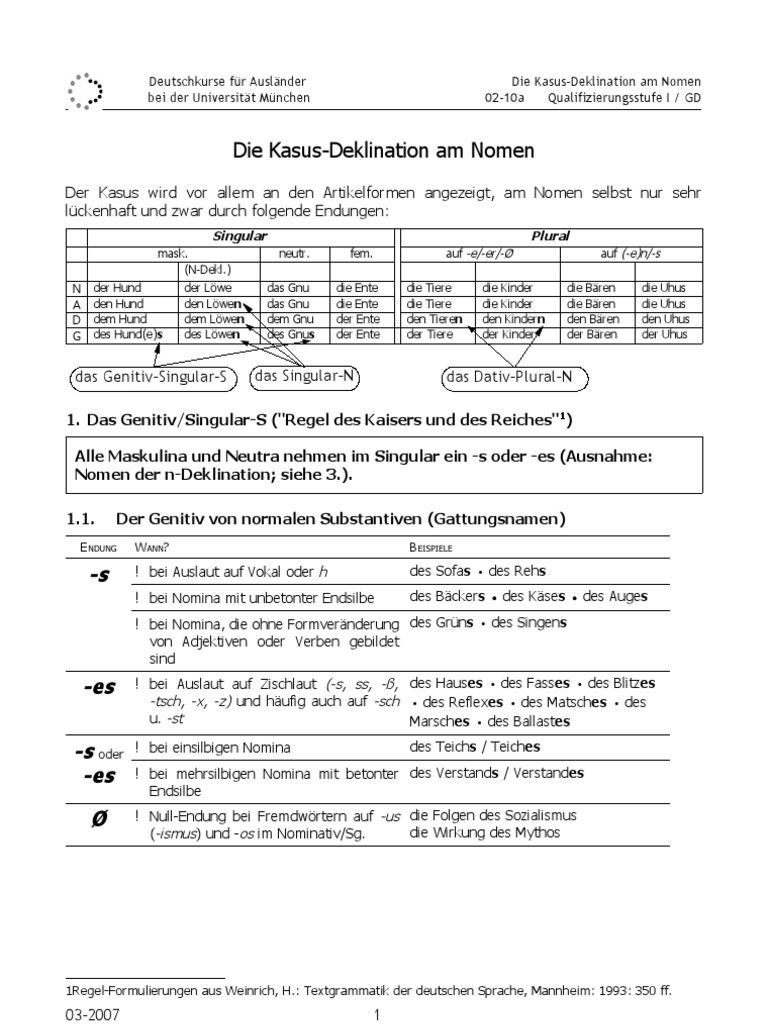 Deutschkurse bei der Universität München eV (DKFA) Agnesstraße 27, München 49 (0)244 10 490 EMail senden direkt an DKFA Website Universität München eV Beachten Sie bitte, dass alle in der Hochschule München immatrikulierten StudentInnen StudentInnenrabatt der DKFA erhalten. Deutschkurse für Ausländer bei der Universität München Regeln zur Pluralbildung Qualifizierungsstufe I / GD B Nomen mit Suffix Nomen mit Suffix bilden ihre Pluralform nach denselben Regeln wie Nomen ohne Suffix (Gruppe A) Ihre Pluralbildung ist jedoch wesentlich zuverlässiger (meist 100%) als die der nichtsuffigierten. Infórmate para que tu hijo nazca sano.