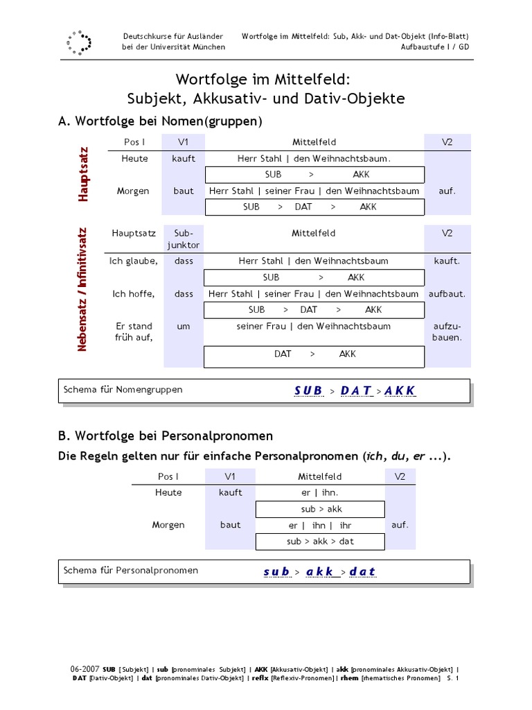 Wortfolge Im Mittelfeld Subjekt Akkusativ Und Dativ Objekte