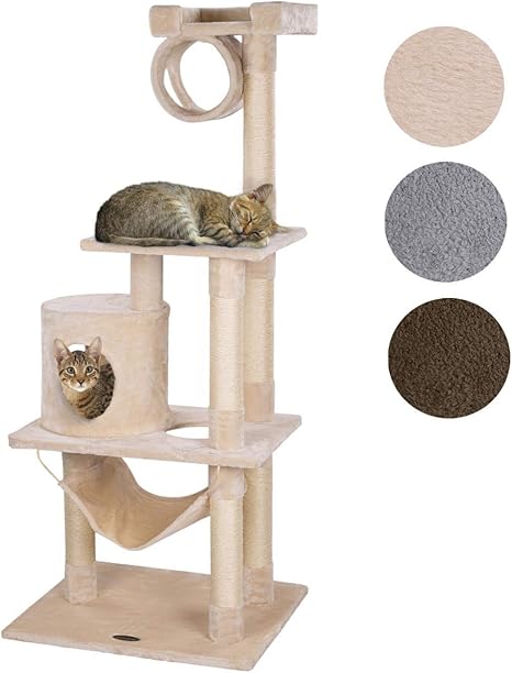 Happypet Kratzbaum Fur Katzen Mittelgross 157 Cm Hoch Kletterbaum Katzenbaum Stabile Saulen Mit Sisal Ca 8 Cm Hohle Tunnel Aussichtsplattform Hangematte Beige Amazon De Haustier