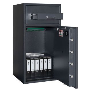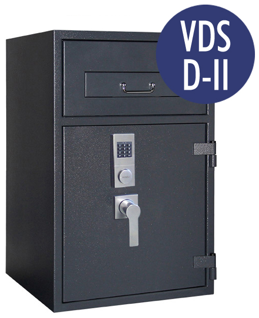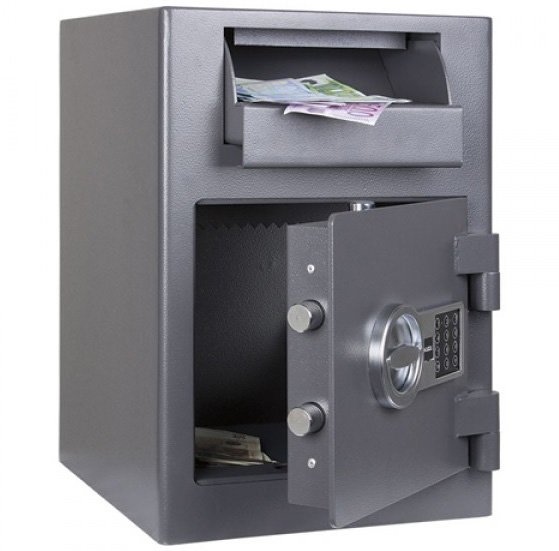 Ein Tresor mit Einwurfmöglichkeit wird auch als Deposittresor, Schubladen oder Nachttresor bezeichnet Das Besondere an solchen Behältnissen sind spezielle, technische Einrichtungen, die gegen Eingriff und somit gegen jegliche unbefugte Entnahme besonders schützen.