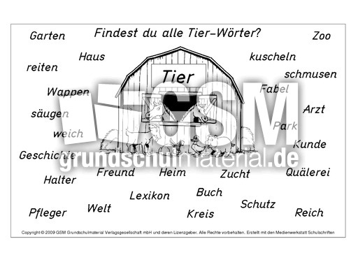 Worterratsel Mit Tieren Unterrichtsmaterial Im Fach Deutsch Tiere Wort Worter