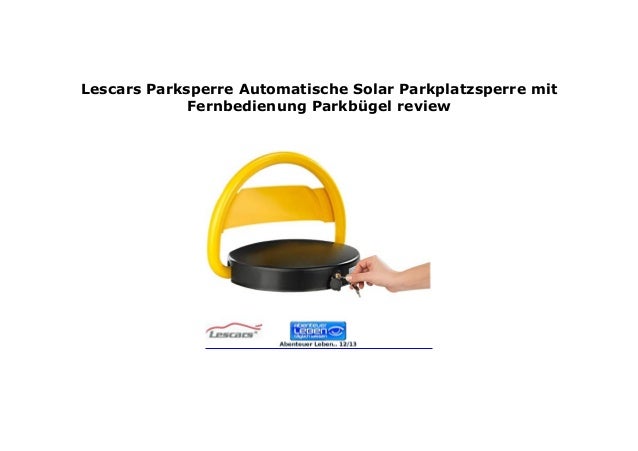 Die hängen Sie einfach an die Wand Parken Sie mit Hilfe der Ampel!. Lescars Automatische SolarParkplatzsperre mit Fernbedienung YouTube Die Produktvorstellung beginnt im Video bei Minute (3730) in einem neuen Fenster Hier Beratungsvideo zu Lescars SolarParkplatzsperre ansehen Sie sehen eine Aufzeichnung des BeratungsSenders pearltv. Parkplatzsperre absolute Kontrolle über Ihren Parkplatz Mit einer robusten Parkplatzsperre aus Stahl sichern Sie Ihren Parkplatz zuverlässigZudem steuern Sie durch die Wahl der Schließung, abhängig vom Produkt, selbst, wer Ihre Parkplätze nutzen darfSie entscheiden, wann die Parkplatzsperre aufgestellt und wann der Parkplatz durch Umlegen der Sperre (Klapppfosten) für Fahrzeuge frei.