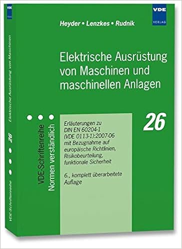 Elektrische Ausrustung Von Maschinen Und Maschinellen Anlagen Erlauterungen Zu Din En 604 1 Vde 0113 Teil 1 07 Mit Bezugnahme Auf Europaische Funktionale Sicherheit Schutzkonzepte Amazon De Paul Heyder Dieter Lenzkes Siegfried Rudnik Bucher