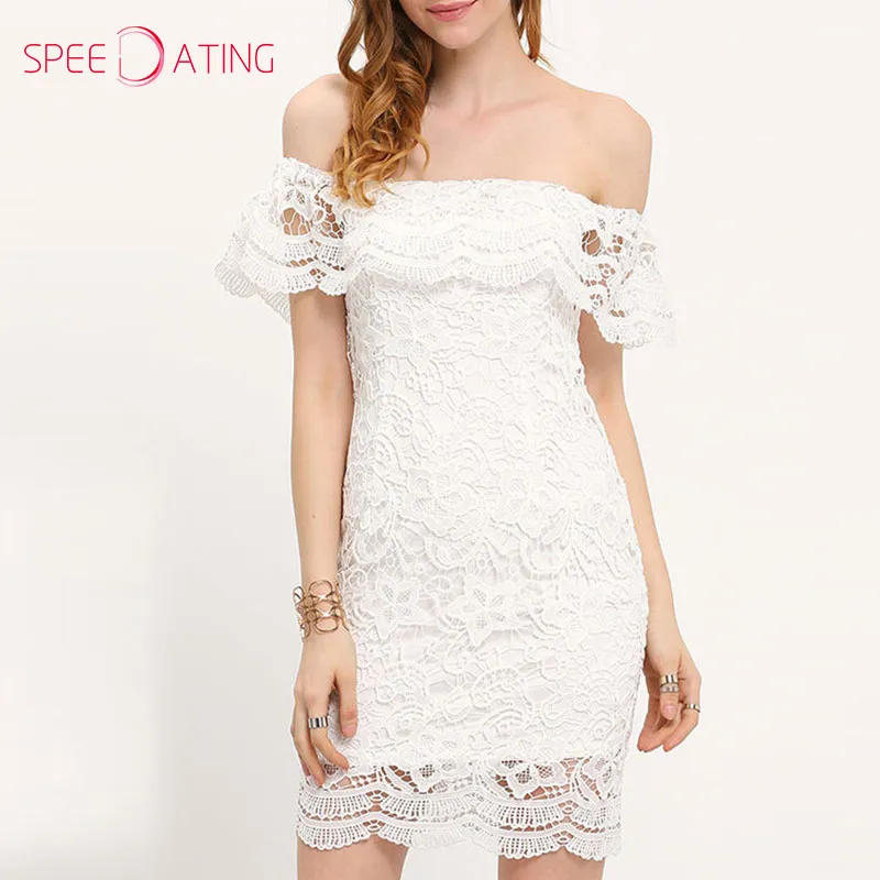 Reizend Schulterfrei Volant Spitze Bodycon Kleider Weiss Blumenspitze Mantel Kleid Short Mini Einbau Formale Kleider Speedating Dress White Sheath Dressbodycon Dress Aliexpress