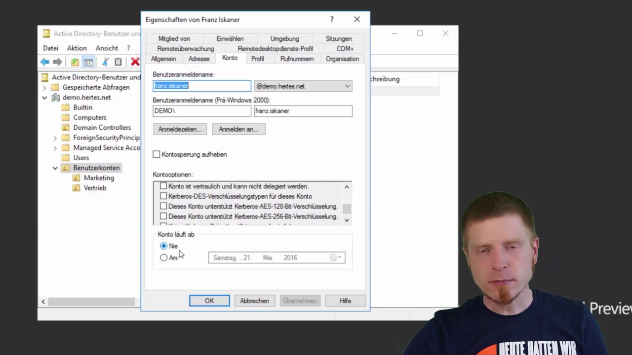 Windows Server 16 Verwalten Von Activedirectory Konten Benutzer Gruppen Computer Und Ous Youtube