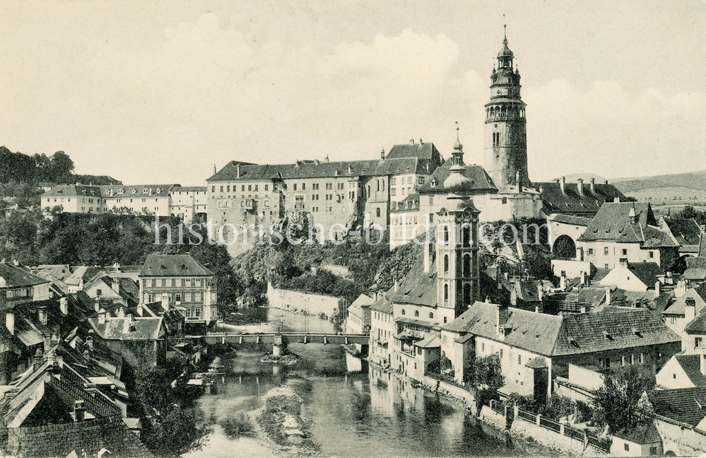 Historische Bilder Foto Historische Ansicht Von Krumau An Der Moldau Cesky Krumlov Blick Uber Die Moldau Zum Schloss Im Vordergrund Die St Jostkirche