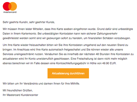 Phsihing Mails Von Mastercard Ihre Mastercard Wurde Eingefroren