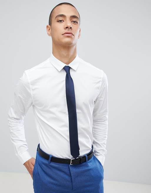 Asos Design Eng Geschnittenes Weisses Hemd Mit Krawatte In Marineblau Sparen Asos