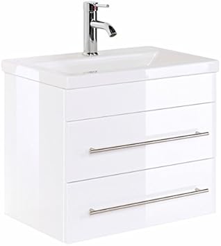 Badmobel Waschtisch Mit Unterschrank In Hochglanz Weiss Inkl 60cm Keramik Waschbecken Amazon De Baumarkt