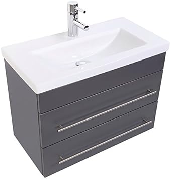 Waschtisch Unterschrank Inkl Keramik Waschbecken 80 Cm Hochglanz Gra