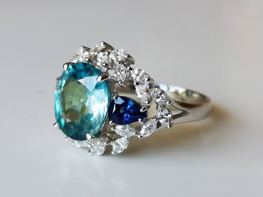 Ring Aus 18 Karat Weissgold In Naturfarbe Mit Blauen Zirkonia Steinen Saphiren Von 4 5 Karat Bei Pamono Kaufen