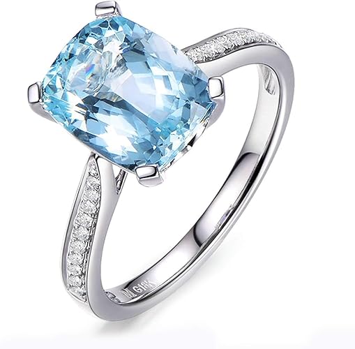 Daesar 18 Karat Weissgold Ring Damen 3 15ct Kissen Aquamarin Hochzeitsring Weissgold Ring Mit Diamant Amazon De Schmuck