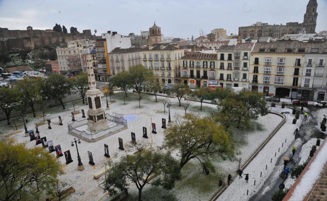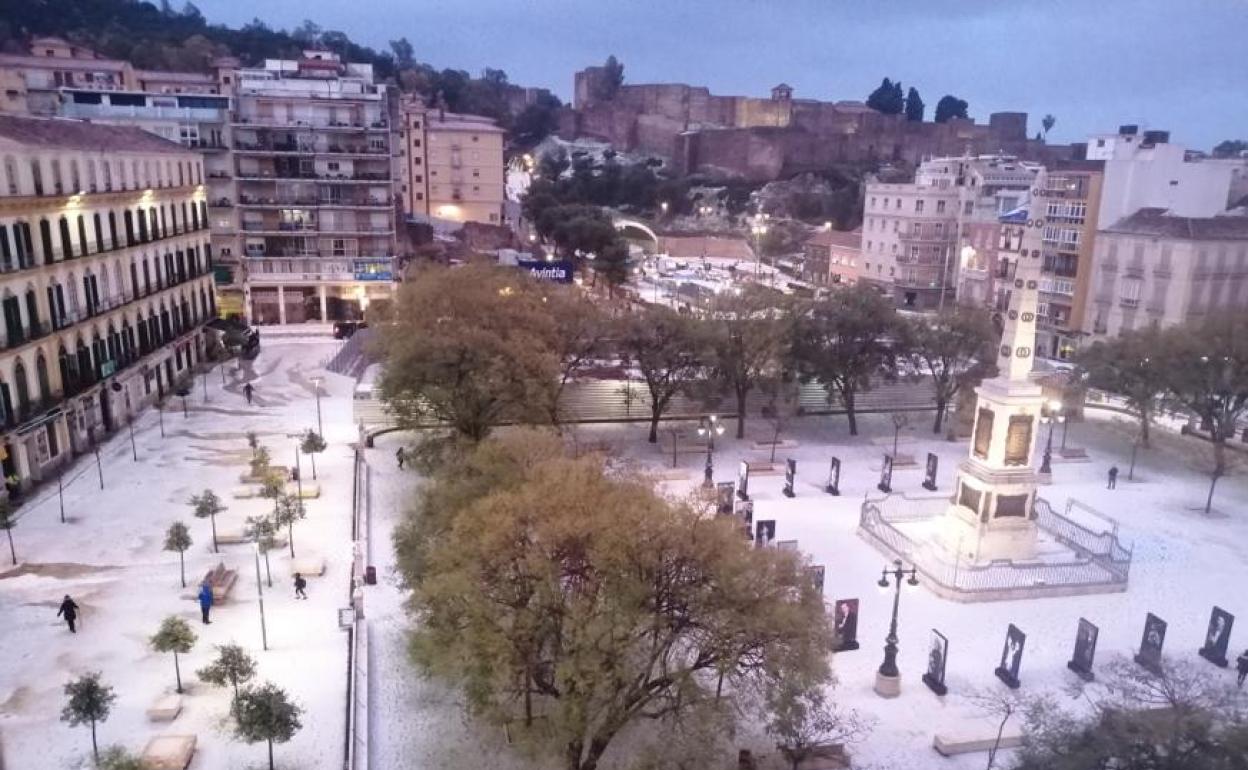 Granizada En Malaga Insolita Imagen De La Plaza De La Merced Tenida De Blanco Diario Sur