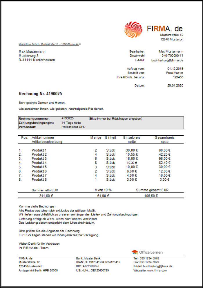 Muster umsatzsteuerbefreit (pdf, 30kb) Muster umsatzsteuerpflichtig (pdf, 28kb) Muster Subunternehmer (pdf, 35kb) 6 Videos (Gesamtspielzeit >25 Min) 3 Softwarealternativen zu Excel mit Test, Vor und Nachteile Ist Ihnen bei der Ausfertigung einer Rechnung ein Fehler unterlaufen, können Sie eine Stornorechnung schreiben und damit die falsch.