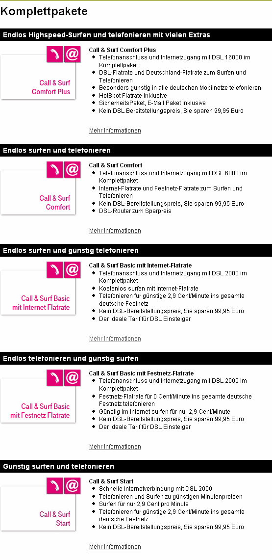 ^ "Call & Surf Comfort Pakete" Call & Surf Comfort packages (in German) Deutsche Telekom Retrieved ^ "skyDSL2 FLAT S" skyDSL Flat, Tarife und Tarifübersicht (in German) skyDSL Deutschland Retrieved ^ a b "Call & Surf Comfort via Funk Highspeed surfen im besten LTE Netz!" (in German) Deutsche Telekom Retrieved.