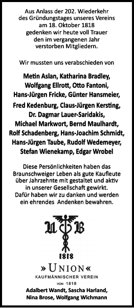 Verstorbene Mitglieder Gedenken Braunschweiger Zeitung