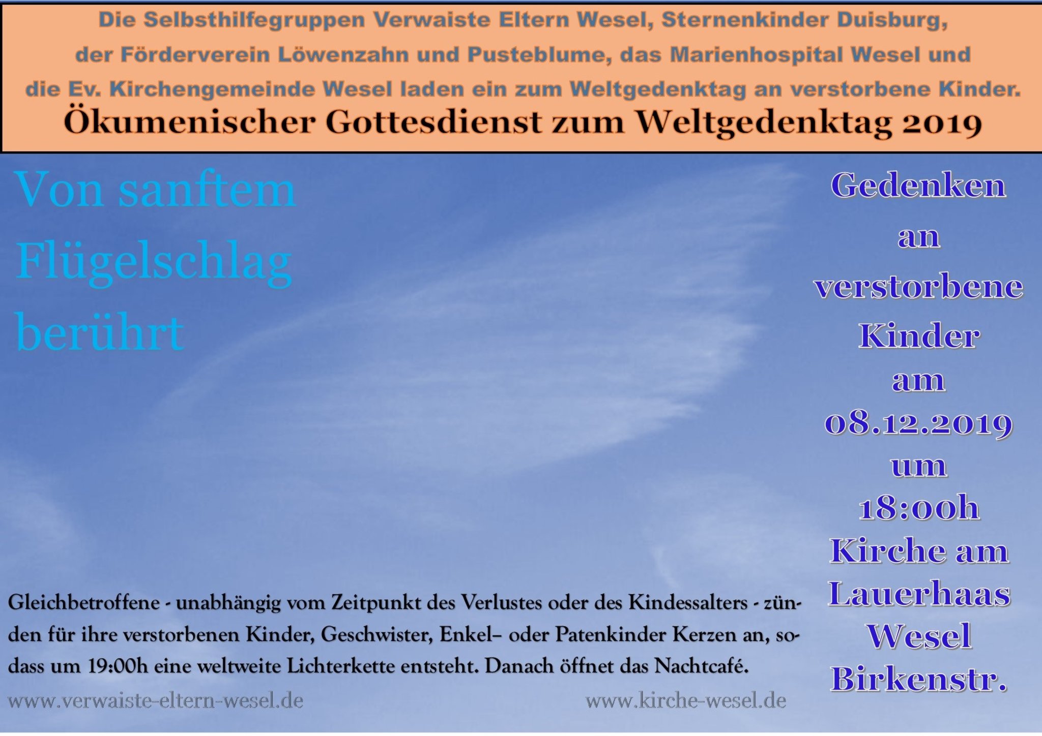 Vom Sanften Flugelschlag Beruhrt Gottesdienst Zum Gedenken An Verstorbene Kinder Am 8 12 Um 18 Uhr In Der Kirche Am Lauerhaas