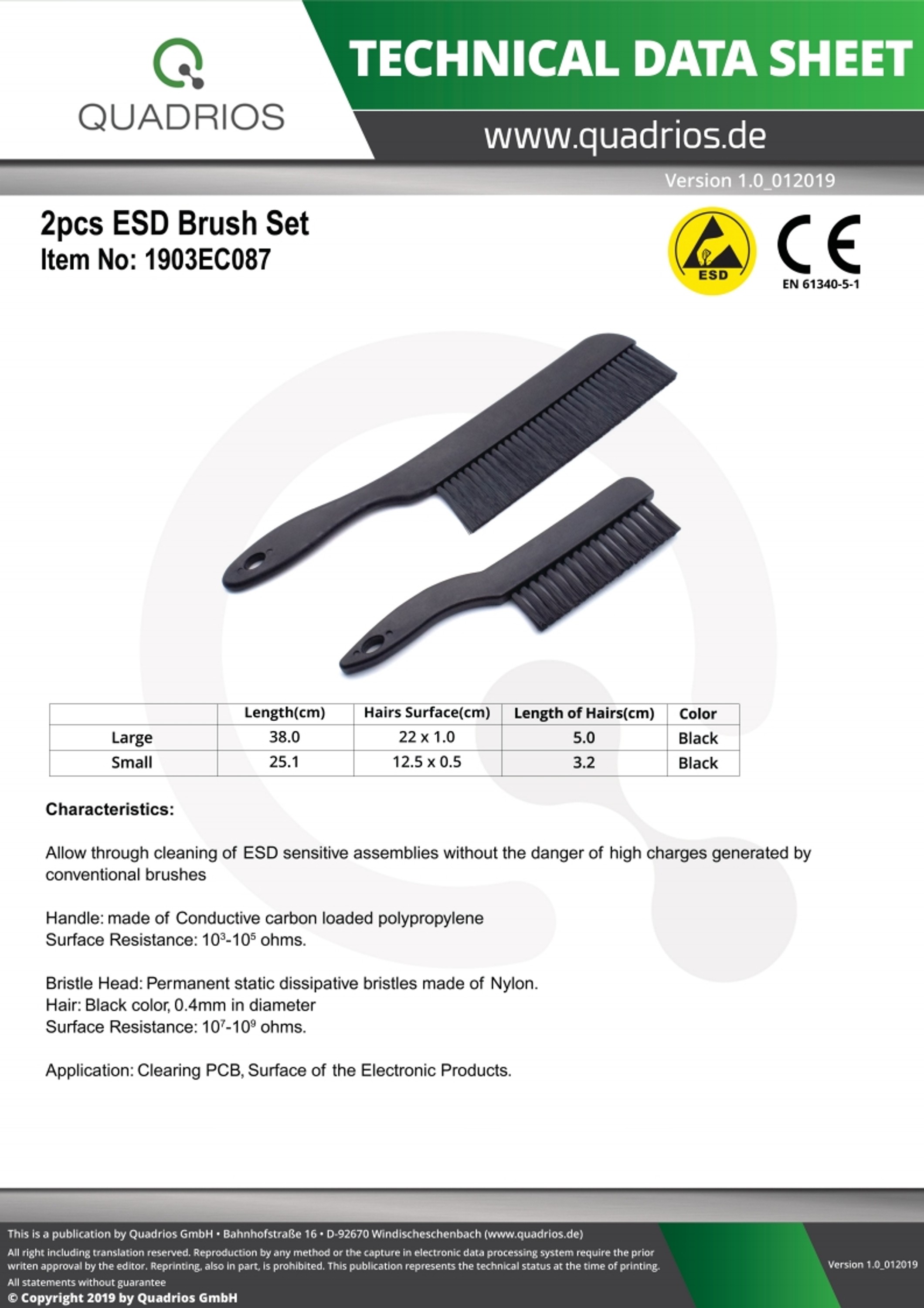Esd Reinigungsbursten Set Gross 2 Teilig Prof Antistatik Zubehor En 5 1 Quadrios