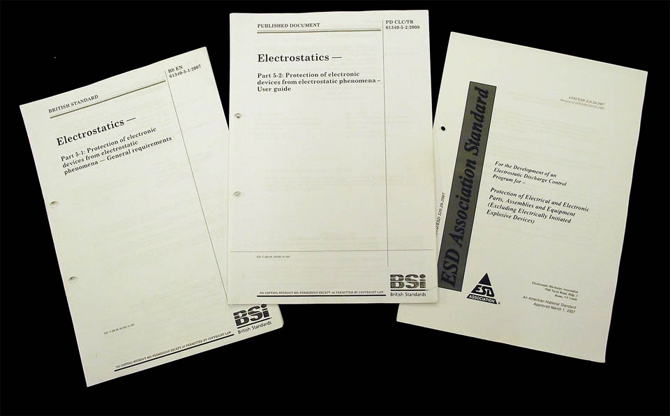 BS EN applies to activities that manufacture, process, assemble, install, package, label, service, test, inspect, transport or otherwise handle electrical or electronic parts, assemblies and equipment with withstand voltages greater than or equal to 100 V HBM, 0 V CDM and 35 V for isolated conductors. All directions and standards The international standards IEC (Draft 16) and IEC (Draft 17) contain these basic requirements for the protection of electronic devices and components against electrostatic discharges Additionally, these standards obtain a program to prepare an ESD control system (ECS) in the electronic. NENENIEC Internationale standaard voor de bescherming van elektronische componenten tegen elektrostatische verschijnselen NENENIEC 16 en de gebruikersrichtlijn (user guide) NPRIEC/TR 18 ANSI/ESD S.