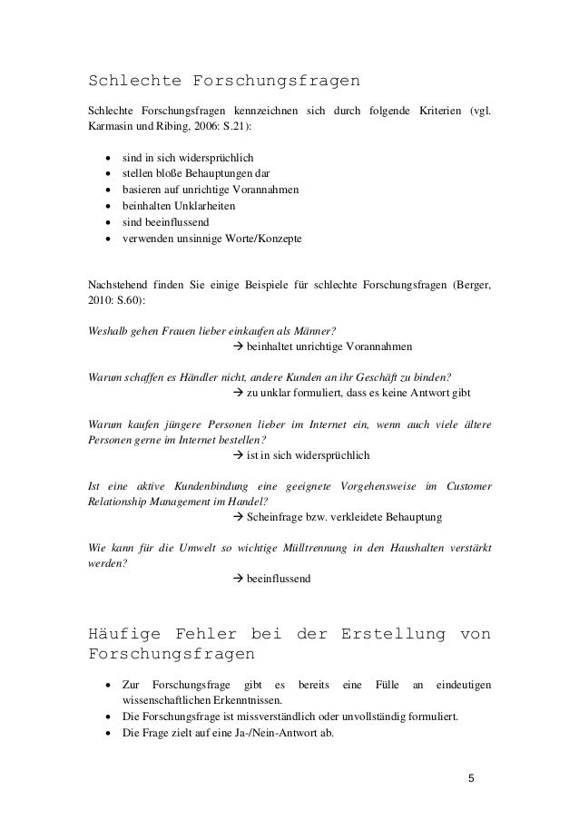 Forschungsfrage Formulieren Beispiele