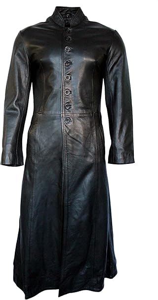 Matrix Reloaded Men Keanu Reeves Black Full Length Real Leather Coat Jacket Amazon De Bekleidung
