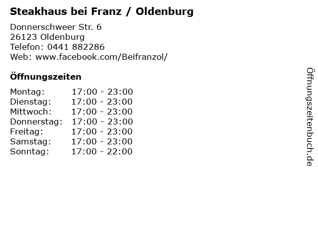 Öffnungszeiten Restaurant Bei Franz Restaurant Steakhouse in Oldenburg.