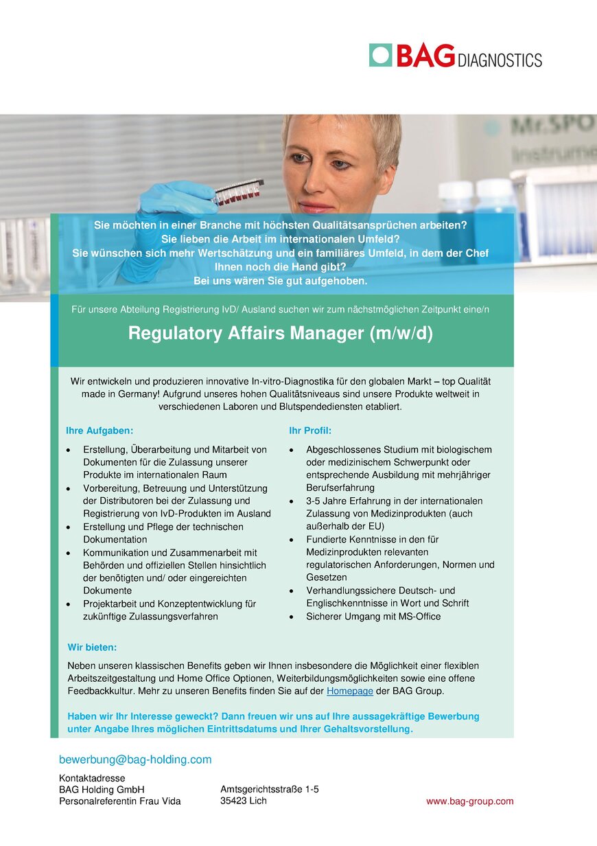 Jobs Und Stellenanzeigen Regulatory Affairs Manager Auf Karrieretipps De