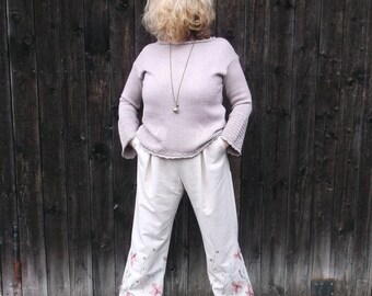 Kostenlose Nahanleitung Plus Schnittmuster Weite Hose Mit Stickapplikation Initiative Handarbeit Weite Hosen Weite Hosen Damen Hose Nahen Schnittmuster