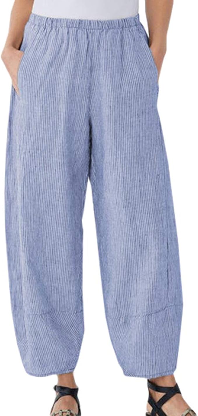 Hibote Damen Streifen Weite Hose Hippe Bohmen Harem Hosen Gummizug Taille 7 8 Sommerhosen Lose Mode Freizeithose Sommer Mode Cropped Hosen Geschaft Buro Hosen Amazon De Bekleidung