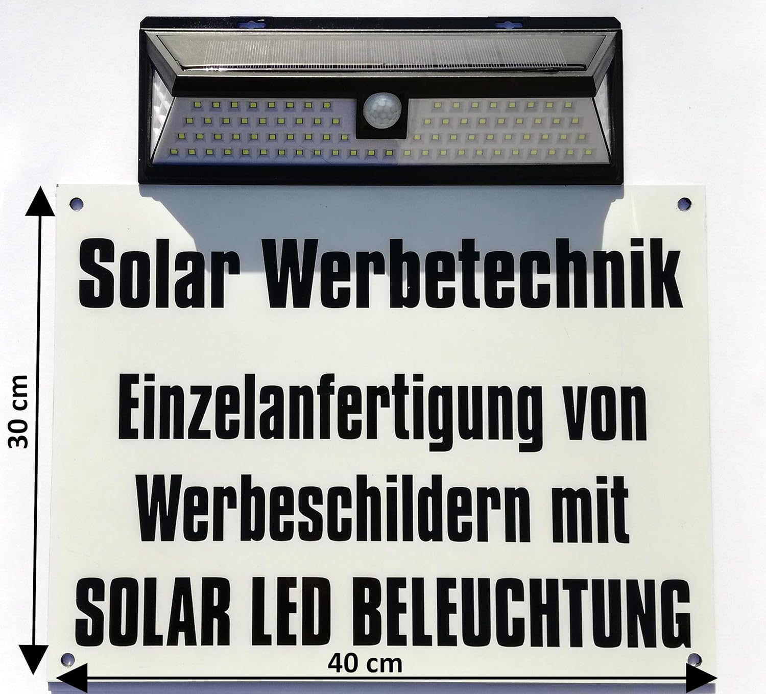 Solar Werbeschild Infotafel 40 X 30 Cm Mit Text Hinweis Hausnummer Firmenlogo Leuchtschild Mit 80 Led Solarlampe Amazon De Beleuchtung