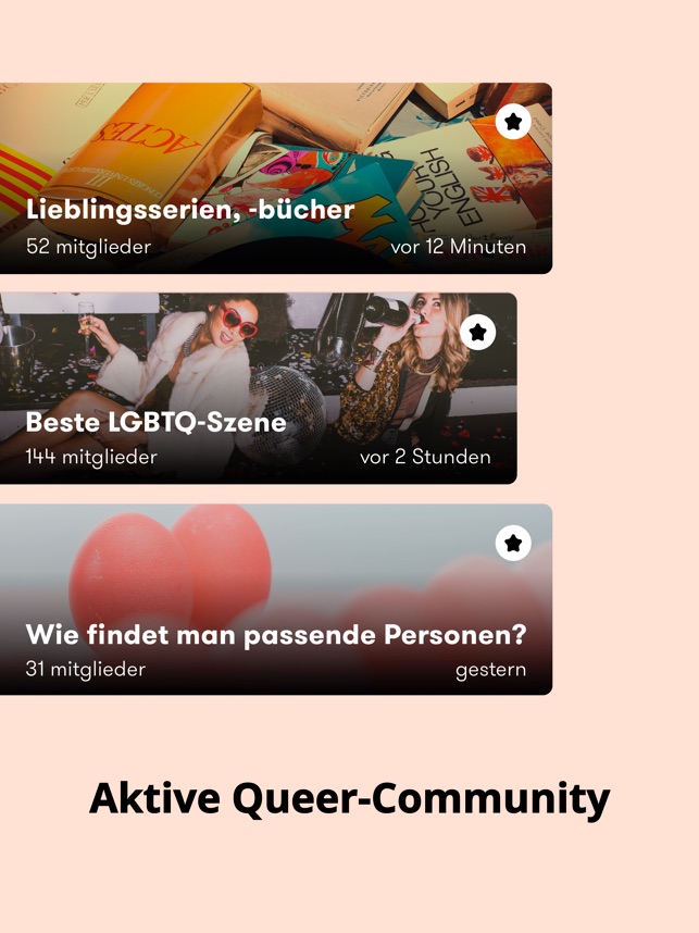 Friendship, Chat & Guide Für alle schwule, bisexuelle, transsexuelle und interessierte Jungs und Männer ab 14 Jahren Sicherheit Dein Standort bleibt für andere Nutzer unsichtbar, nur die ungefähre Position wird angezeigt Auch deine Identität bleibt vor anderen Nutzern völlig geheim Alle unsere Bereiche werden überwacht, um bei. GAYamore ist das soziale Netzwerk für Männer, die auf Männer stehen Die Community verbindet klassische Funktionen mit neuen Features und richtet sich an Schwule, Bisexuelle und Transgender – ganz egal mit welchem Fetisch Ob zwangloser Chat, Freundschaft Plus. LiebeLebenLeute die Bi Community Du bist nicht allein Community für bisexuelle Frauen und Männer Auf diesen Seiten findest Du Menschen, die nicht nur den Austausch zum Thema Bisexualität suchen Mit unserer Freiheit der Bisexualität, Auf diesen Seiten findest Du Menschen, die nicht nur den Austausch zum Thema Bisexualität suchen.